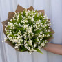 На фото букет из ландышей в крафте. В составе: ландыш 21 шт, крафт-бумага 1 шт, атласная лента 1 шт, . Все цветы свежие и ароматные, букет красиво оформлен и отлично подходит для подарка. Доступна доставка цветов или самовывоз.
